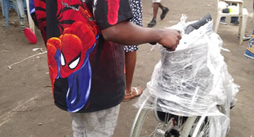 Nous envoyons du matériel répondant à des situations des personnes handicapées. L'envoi se fait auprès de nos partenaires à Kinshasa.
