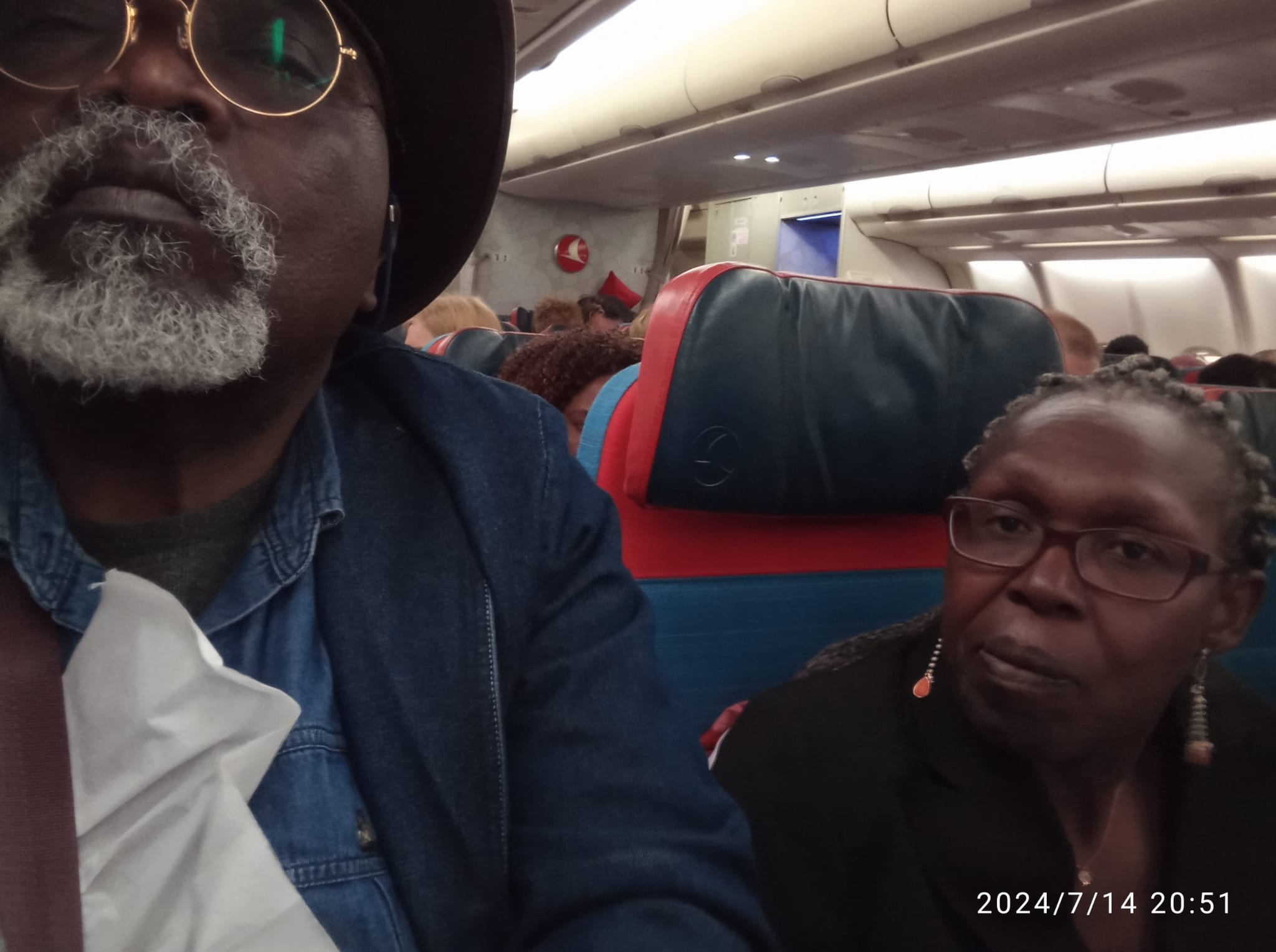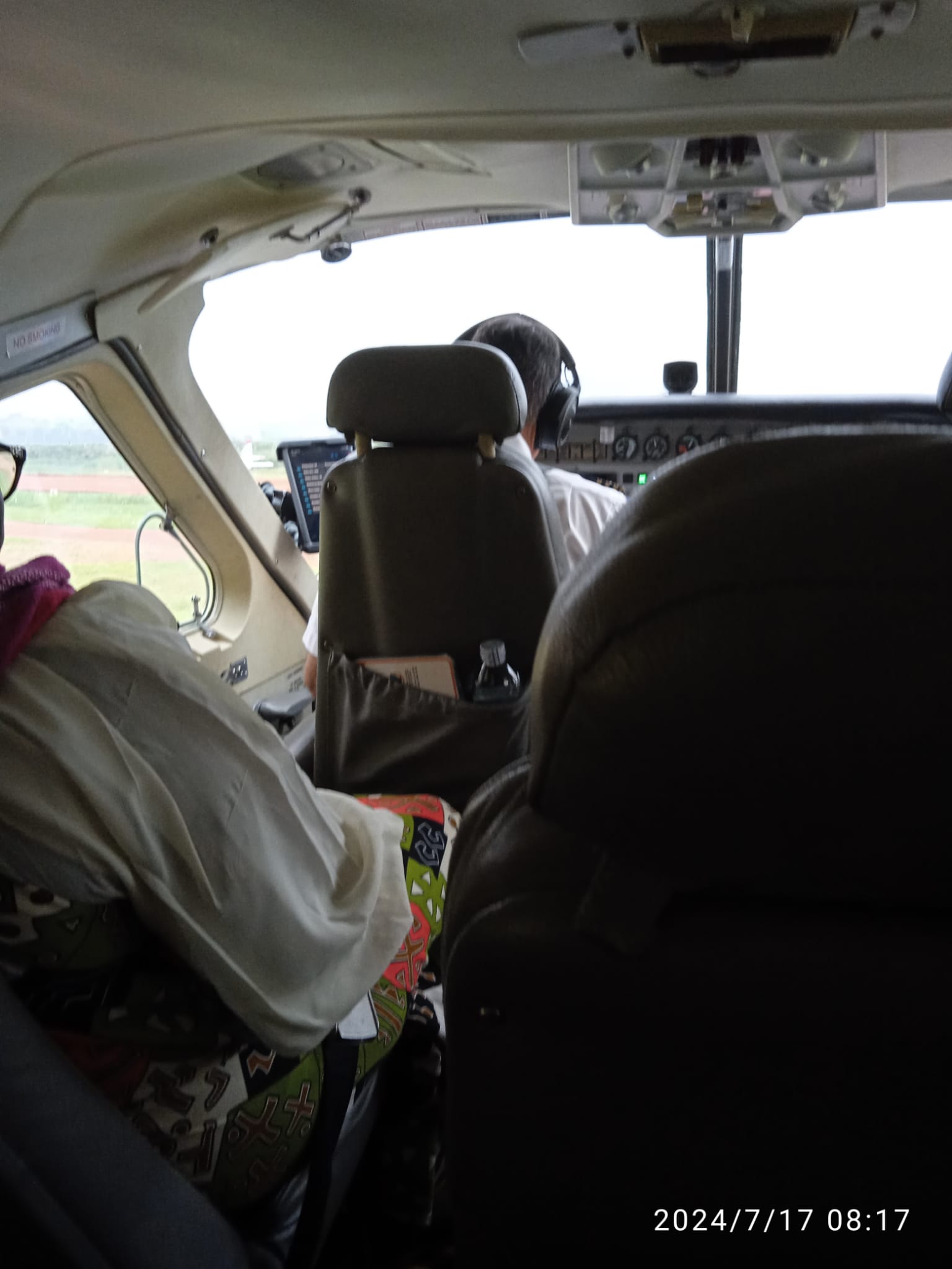 Le président d'AENSAH association et maman Joséphine épouse du président membre d'AENSAH association dans l'avion Maf Congo petit porteur des missionnaires protestants en route vers Bunia capitale de la province de l'Ituri