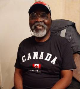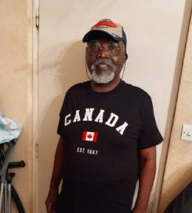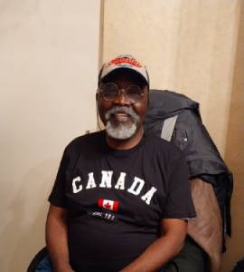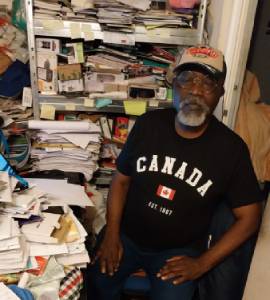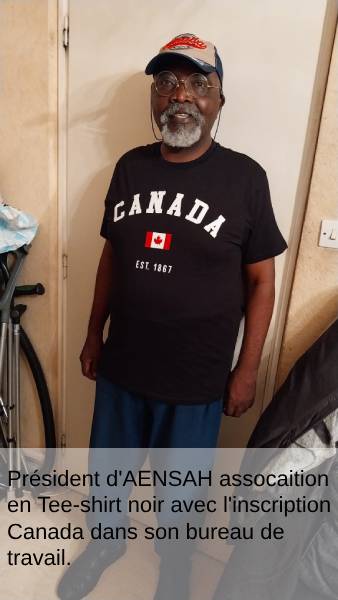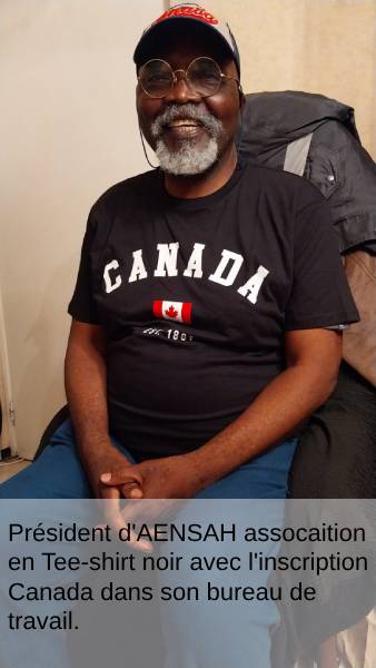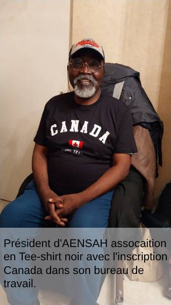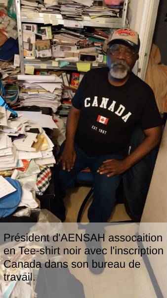 Président d'AENSAH assocaition en Tee-shirt noir avec l'inscription Canada dans son bureau de travail.