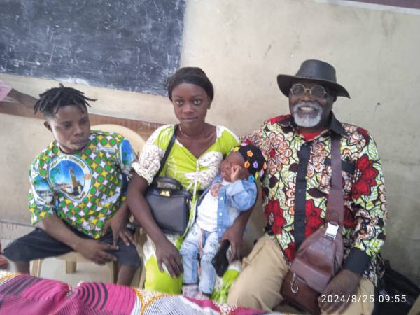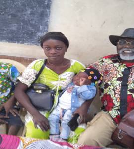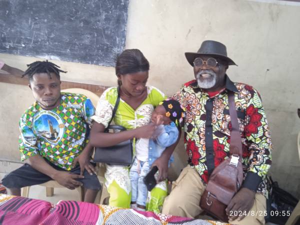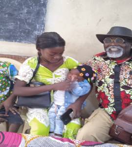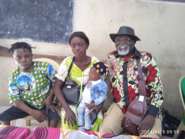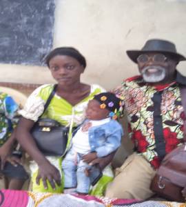 Voici le premier handicapé de Kinshasa que AENSAH association a commencé à aider lorsque que le président d'AENSAH l'avait repéré dans une émission de la RTNC Radio Télévision Nationale Congolaise. Il marchait sans fauteuil roulant et avec ses mains. Cela avait touché le coeur du Président de l'association qui avait immédiatement entré en contact avec la journaliste qui donnait l'émission sur l'handicap et le dévellopement. Puis le président AENSAH lui a envoyé un fauteuil roulant pour que sa femme s'occupe de lui. Ils ont eu un bébé comme vous le voyez sur la photo au côté du président de l'association.