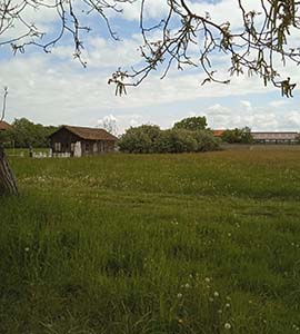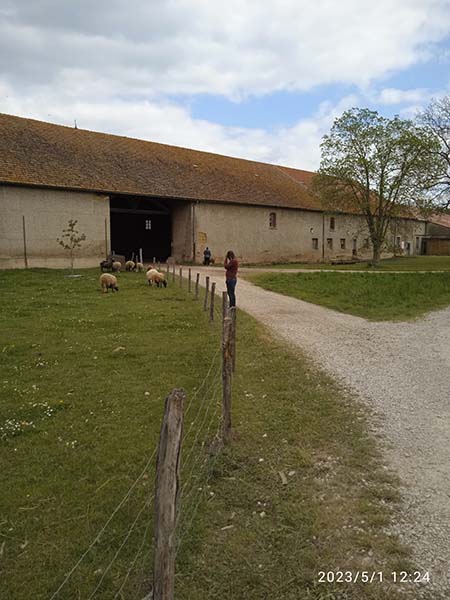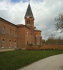 Dans l'Abbaye Notre-Dames des Dombes derrière en allant du côté de la ferme